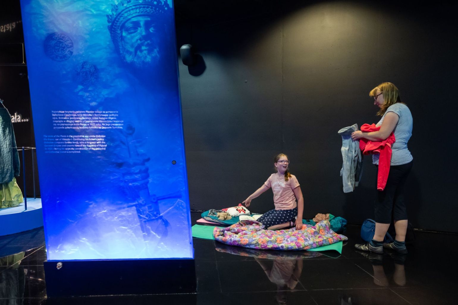I w końcu moment kulminacyjny całego wydarzenia. Czy mogliście sobie wyobrazić, że w miejscu multimedialnej ekspozycji, gdzie na co dzień tłumy turystów poznają historię Złotej Kaplicy, pierwszej katedry w Polsce można rozłożyć śpiwór, nadmuchać materac i położyć się do snu? My udowadniamy, że raz w roku można. Tylko czy będąc pełnym ekscytacji, da się tu spokojnie zasnąć?
