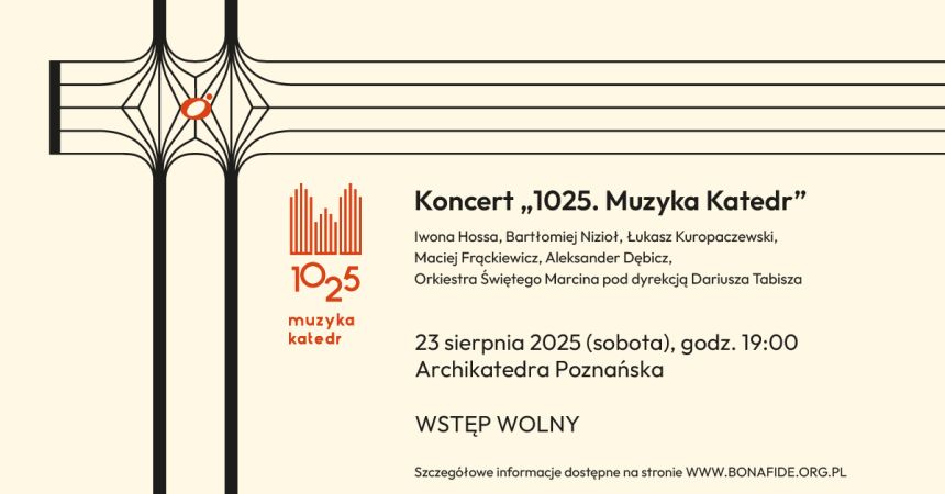 23 sierpnia 2025 roku o godz. 19:00 w poznańskiej Archikatedrze – miejscu pochówku Bolesława Chrobrego – odbędzie się uroczyste wykonanie utworu „1025” skomponowanego przez Aleksandra Dębicza. To główne wydarzenie artystyczne projektu, będące muzyczną interpretacją tysiącletniego dziedzictwa pierwszego króla Polski. W koncercie wezmą udział wybitni soliści i kameralna orkiestra, a sama kompozycja została przygotowana specjalnie na tę okazję.