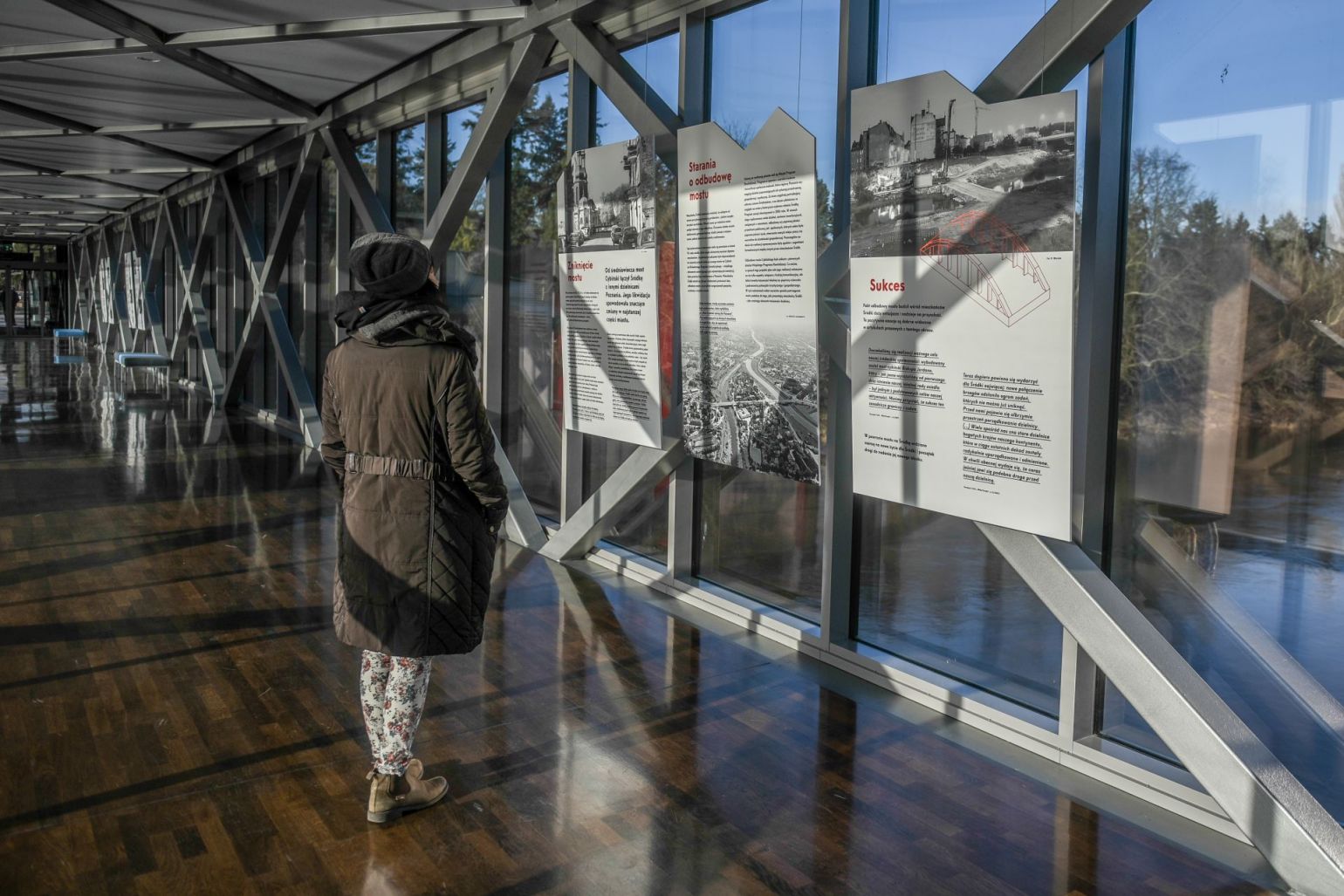 Druga część wystawy zlokalizowana była na kładce Bramy Poznania. Po jednej stronie kładki, tam gdzie okna kierują wzrok na most biskupa Jordana, ustawiony był element aranżacyjny odwzorowujący swym kształtem formę tego mostu. Po przeciwległej stronie umieszczone były plansze informacyjne.