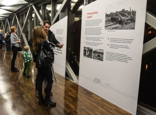 Aby w pełni oddać kontekst historyczny wystawa prezentowała dzieje mostu przez Cybinę i jego znaczenie na przestrzeni wieków. Zaprezentowany został także sam – nietypowy pod względem inżynieryjnym – proces odbudowy mostu, którego istotnym elementem było przetransportowanie przęsła mostowego na obecne miejsce. Ważnym elementem wystawy było uwypuklenie roli, jaką w odbudowie mostu odegrali mieszkańcy Śródki, którzy aktywnie działali na rzecz tej inwestycji.